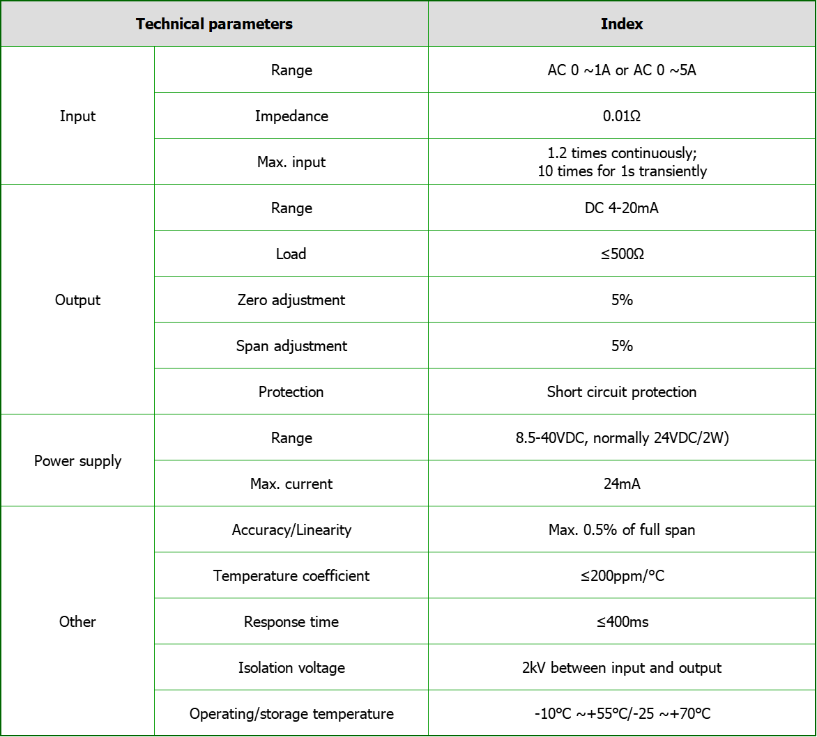 ● Input: AC 0-5A; Output: DC 4-20mA